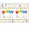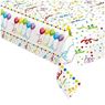Mantel de plástico de color blanco con colores llamativos, para fiestas de cumpleaños tanto de niños como de adulto. Viene la frase Happy Birthday con dibujos de globos y confeti. Mide aprox 120cm x 180cm.