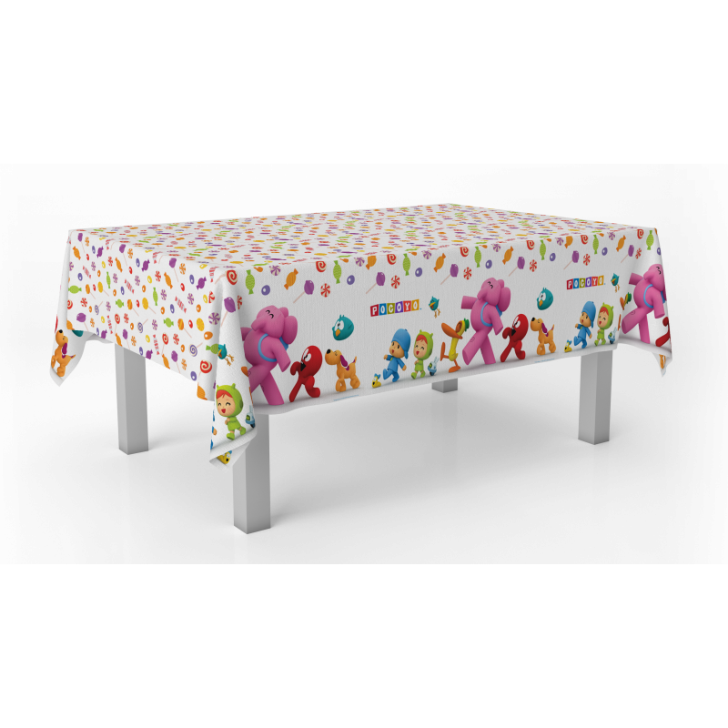 Mantel de Pocoyó nuestro peque mas travieso. Vienen todos los personajes de la serie mas conocida por nuestros peques. Mantel de plástico para tu mesa de cumpleaños. Mide aprox 120cm x 180cm