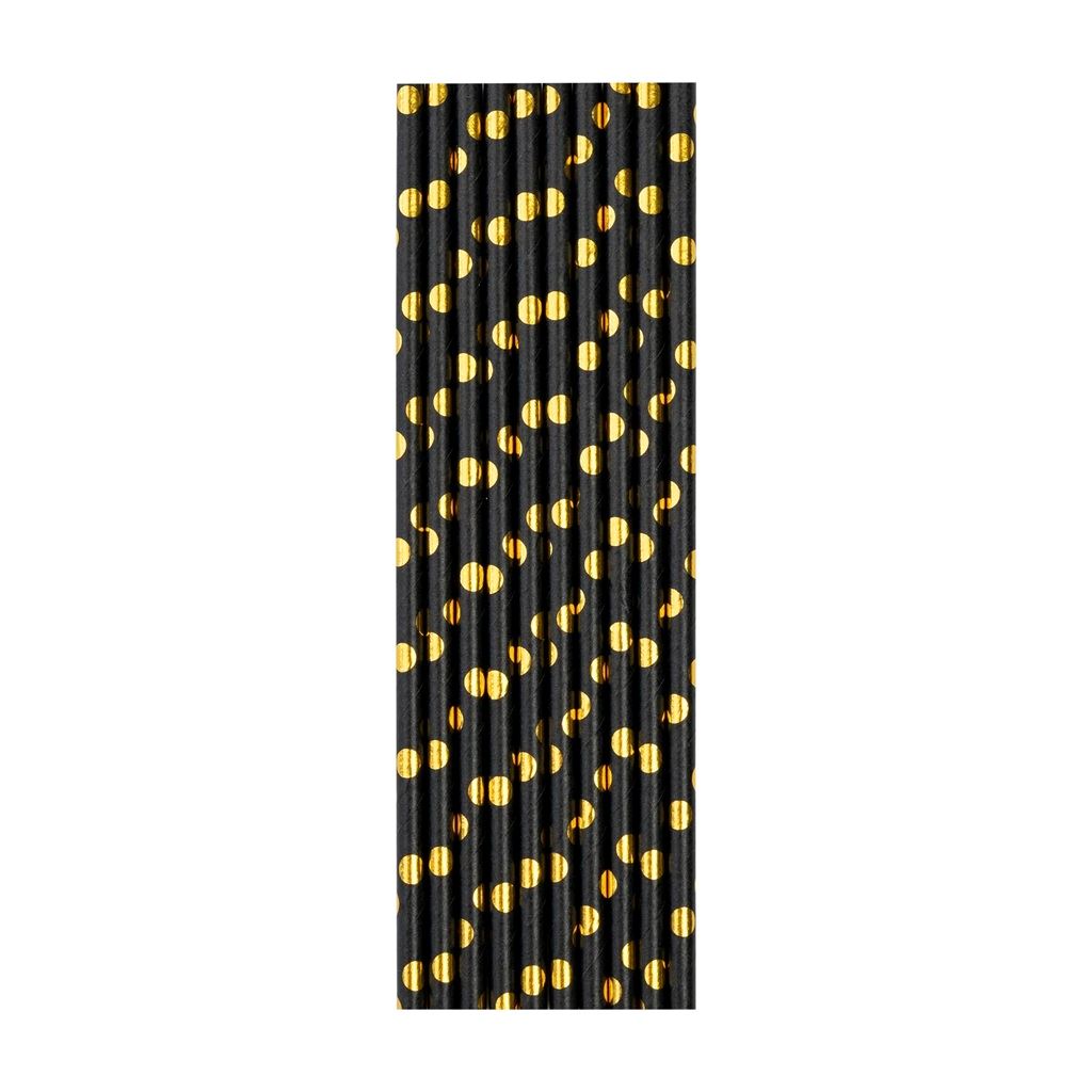 Pajitas de papel negras con puntos dorados (Pack de 10)