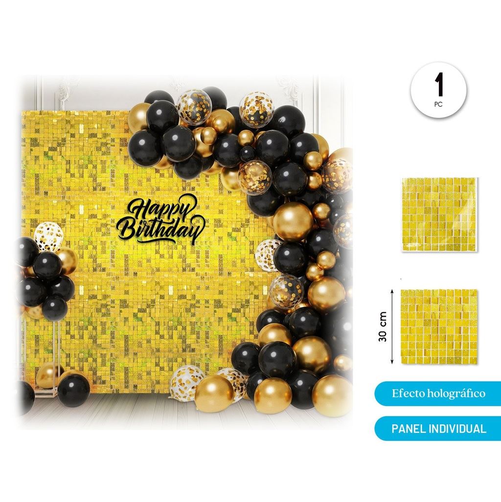 Paneles de Lentejuelas Oro Holográfico Cuadradas 30x30cm (12 unidades)