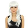Transforma tu look al instante con esta peluca larga blanca con flequillo, perfecta para dar un toque especial a tu disfraz o destacar en cualquier evento temático.