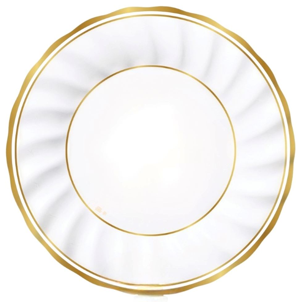 Los platos Classic Gold de cartón metalizado de 30 cm son platos grandes y elegantes, ideales para servir comida en celebraciones especiales con un acabado sofisticado. Su diseño blanco con borde dorado aporta un estilo premium perfecto para bodas, comuniones, bautizos, aniversarios, fiestas navideñas o eventos formales.