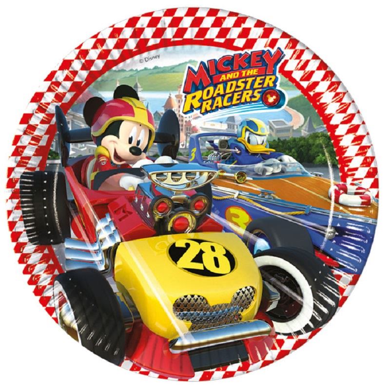 Estos platos de cartón con diseño de Mickey and the Roadster Racers son perfectos para añadir velocidad y diversión a cualquier fiesta infantil. Con un diseño colorido y vibrante, capturan la atención de los más pequeños y son ideales para servir comidas, meriendas o postres.