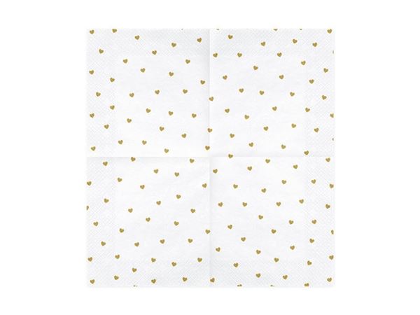 Servilletas Blancas Corazones Dorados papel 33cm (20 unidades)