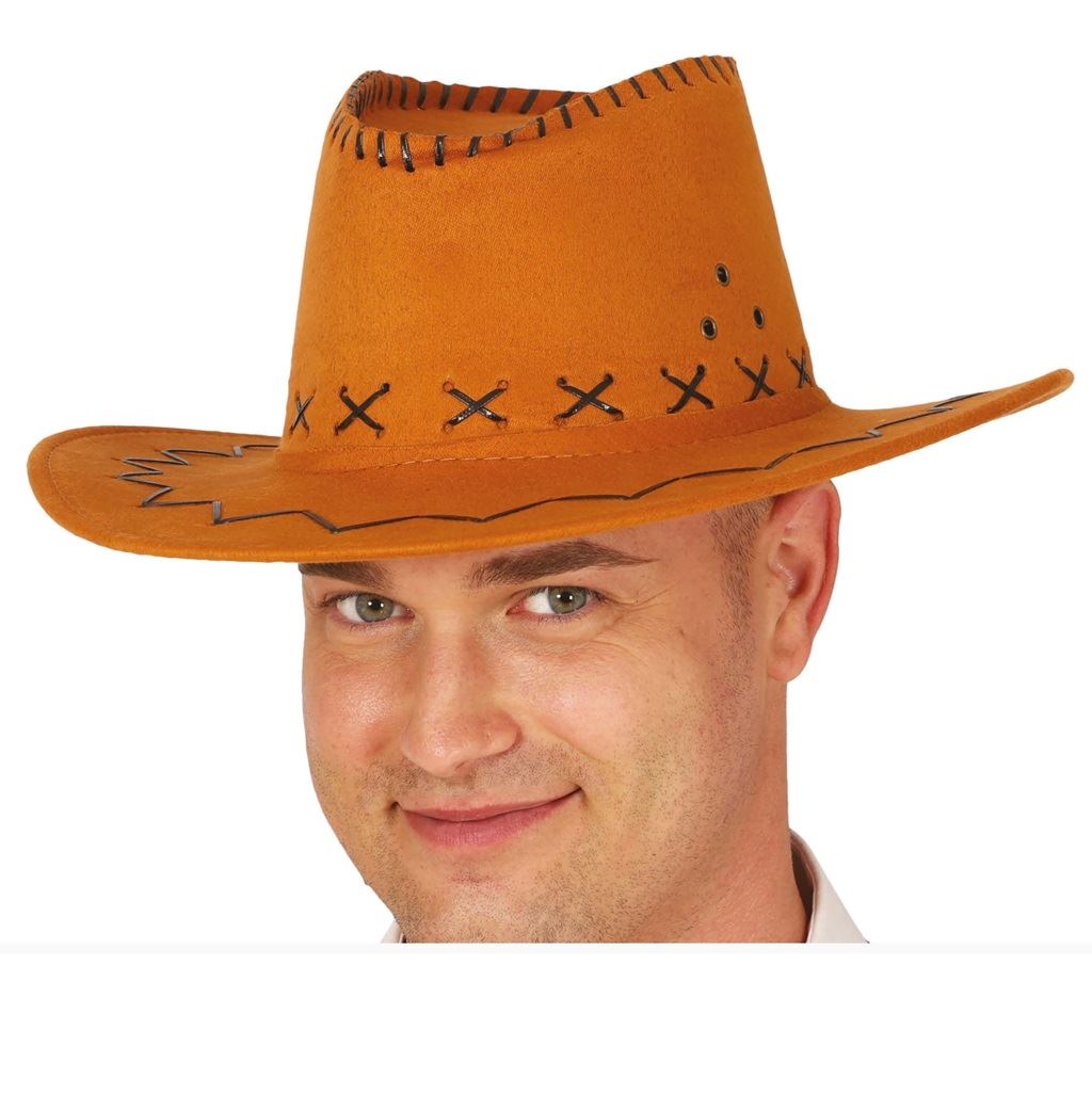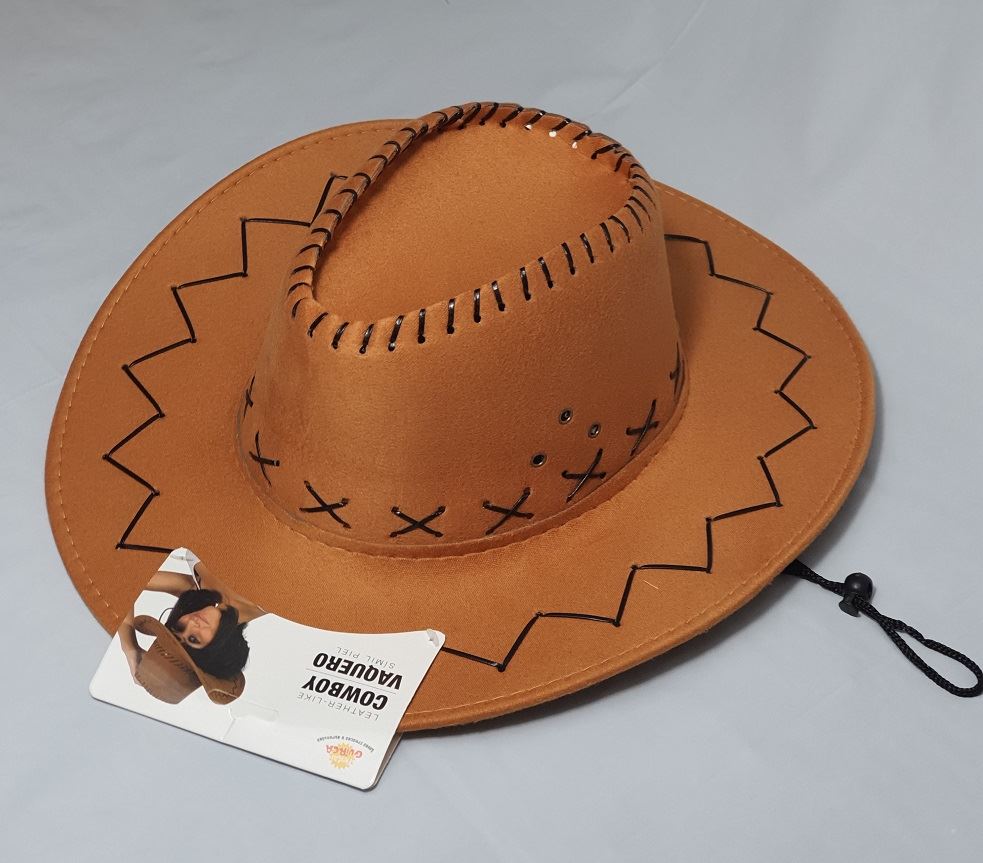 ¡Prepárate para cabalgar hacia la fiesta con este auténtico sombrero de vaquero marrón con acabado símil piel! Ideal para completar tu disfraz de cowboy o sheriff en fiestas temáticas del Oeste, carnavales, despedidas o Halloween, este sombrero aporta ese toque rudo y aventurero que no puede faltar en un verdadero forastero. Con detalles de costuras decorativas en la copa y el ala, está fabricado en material suave tipo fieltro que imita la piel, resultando cómodo y ligero para usar durante horas. **Puede cambiar la tonalidad del color del sombrero a mas oscuro.**