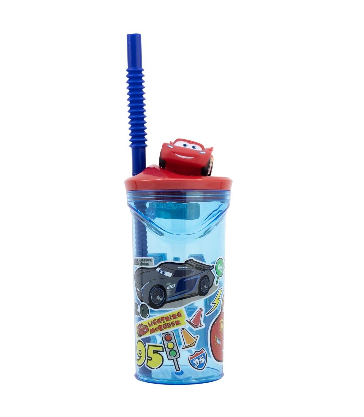 Vaso infantil Cars 360 ml reutilizable con pajita y figura 3D
