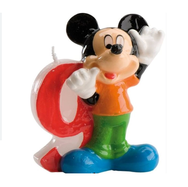 Vela 9 Mickey Mouse para poner en la tarta del pequeño o pequeña de la casa. Contiene el numero 8. Mide aprox. 8cm