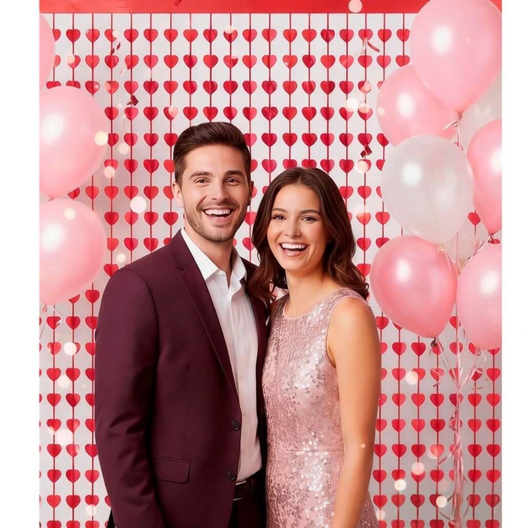 Añade la Cortina de Corazones 2 x 1 m a tu carrito y crea un fondo perfecto para tus celebraciones.