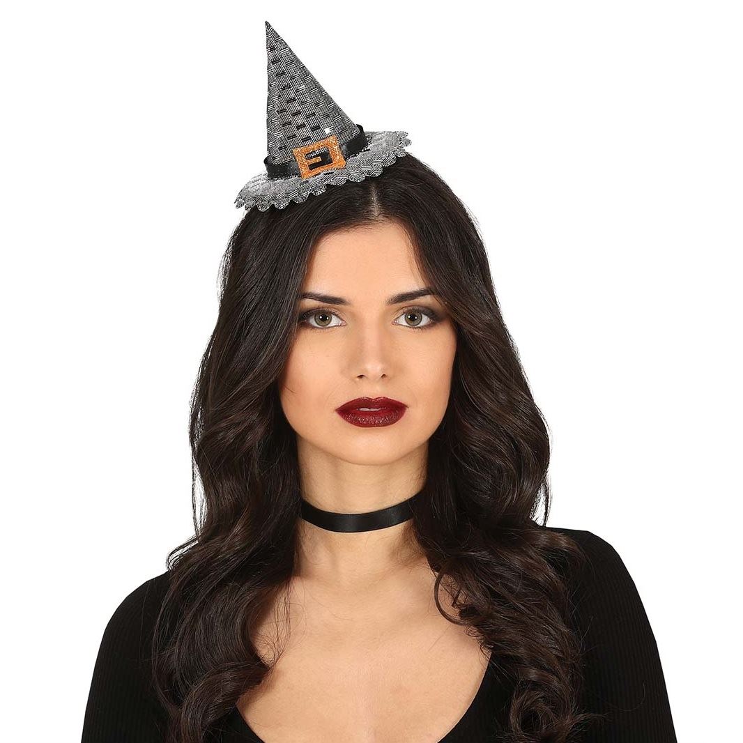 Diadema Gorro bruja en tono plateado. Un sexy y divertido complemento para Halloween y fiestas de disfraces. Talla única