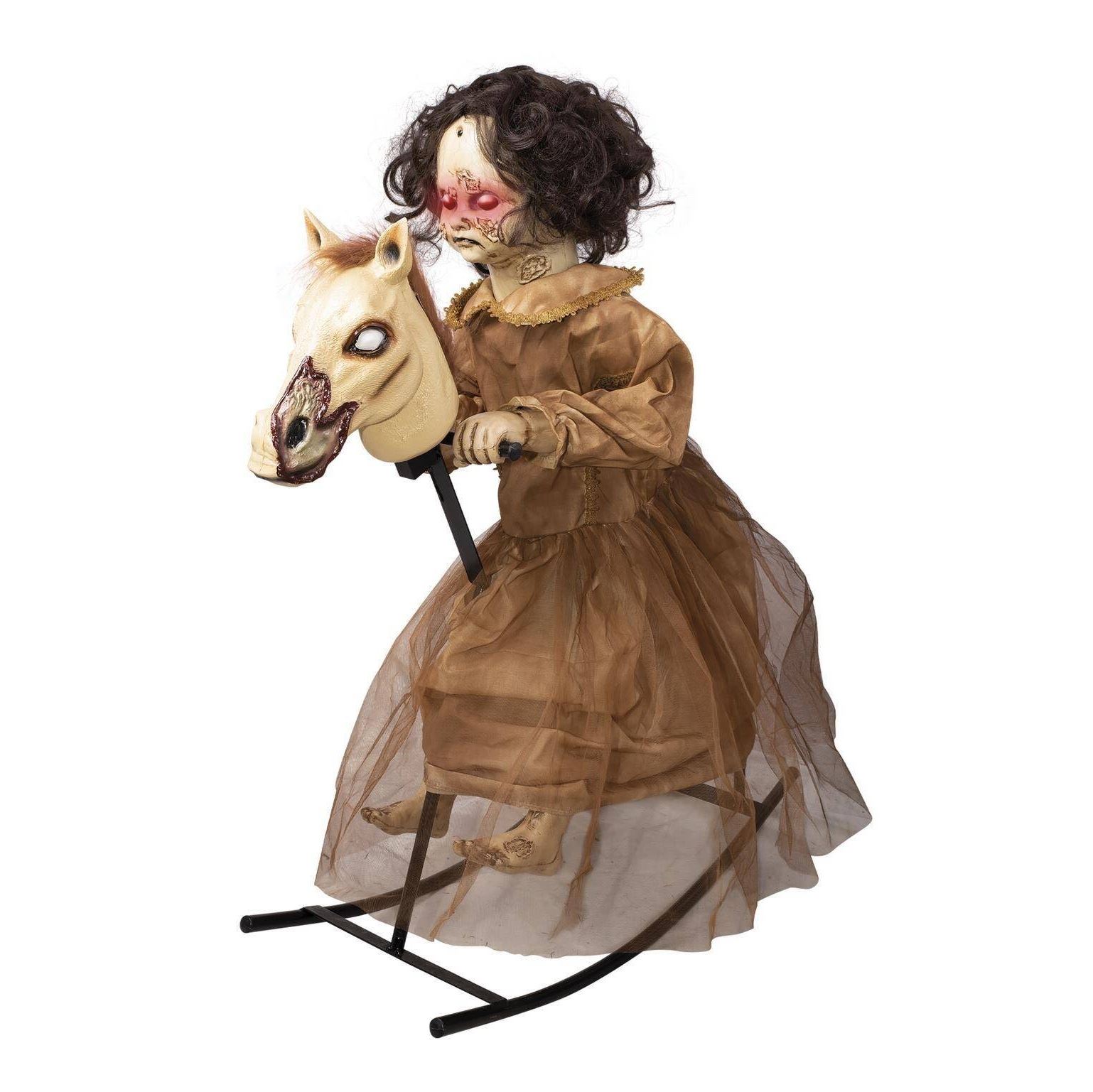 Esta figura animatrónica es el alma (oscura) de cualquier decoración de Halloween. Con su aterrador rostro esquelético, túnica negra y velo morado rasgado, esta criatura se activa con sensores para emitir sonidos espeluznantes, mover su cuerpo hacia arriba y abajo, y encender sus ojos con un resplandor infernal. Perfecta para entradas, fiestas temáticas o escaparates, este personaje levitante transformará cualquier ambiente en una verdadera casa del terror.