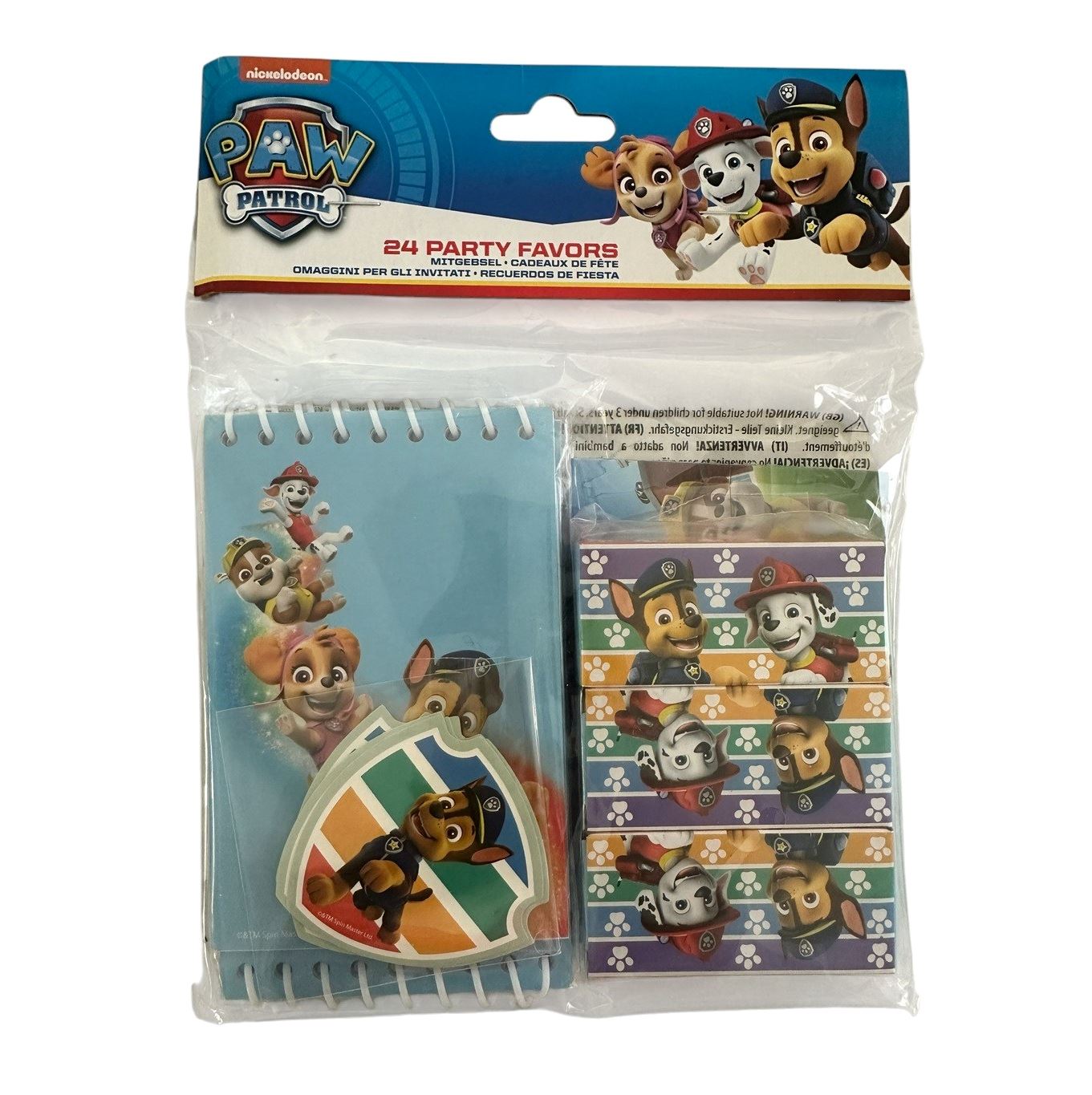 ¡Haz que cada invitado se lleve una sonrisa a casa con este completo set de recuerdos de la Patrulla Canina! Perfecto para cumpleaños infantiles, fiestas temáticas o piñatas. 🐾 Todo lo que necesitas para una fiesta inolvidable Este pack incluye 24 detalles de fiesta (6 sets de 4 artículos) con diseños de los personajes favoritos de Paw Patrol: Chase, Marshall, Skye y compañía. 🎨 Contenido del pack: ✅ 6 blocs de notas con espiral ✅ 6 mini cajas de 4 pinturas de colores ✅ 6 rompecabezas de cartón ✅ 6 hojas de pegatinas temáticas ¡Una opción práctica y divertida para regalar a los peques y mantenerlos entretenidos!