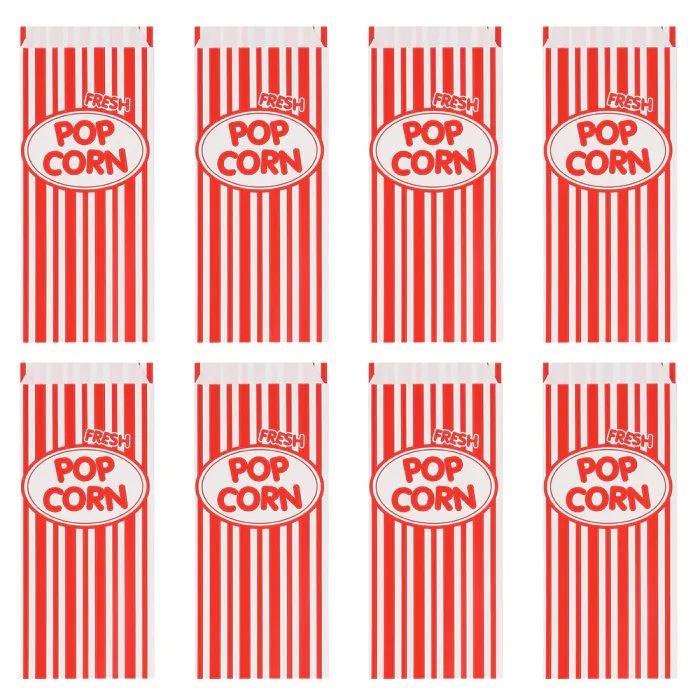 Bolsas de palomitas de papel rojas y blancas – pack 8 unidades son bolsas desechables con diseño clásico de cine, ideales para servir palomitas, chucherías o snacks en fiestas y eventos. Su formato alto y su estética retro aportan un toque nostálgico que funciona tanto en celebraciones infantiles como en fiestas temáticas.