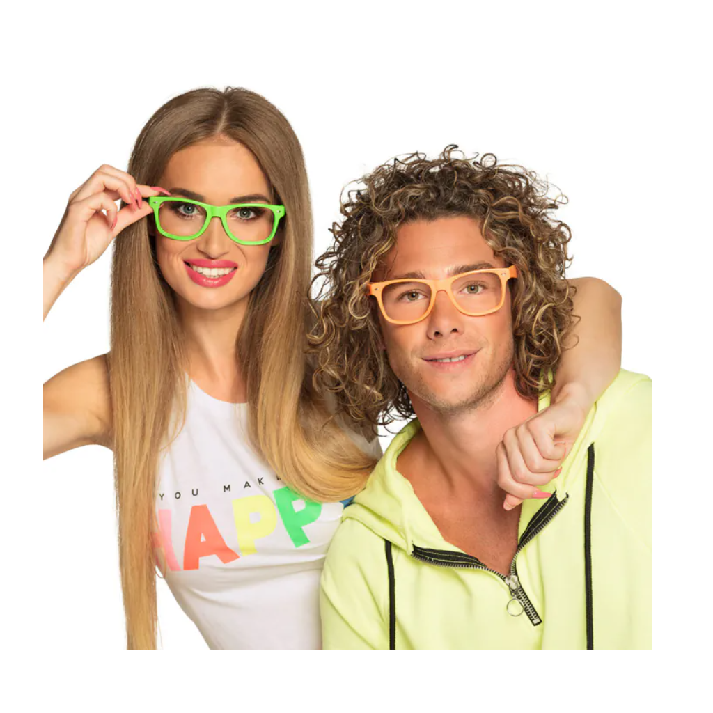 Gafas de colores Neón sin cristal de plástico surtidas. Perfectas para completar tus disfraz y hacer el tonto con tus amigos y familiares en una fiesta o cumpleaños. Se vende por unidad.
