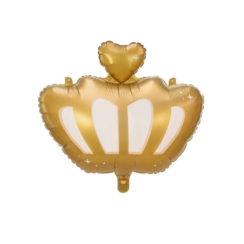 Dale un toque real a tus celebraciones con este globo foil en forma de corona, decorado con un elegante diseño blanco y dorado metálico. Ideal para fiestas de cumpleaños, sesiones de fotos o eventos de temática princesa o realeza.