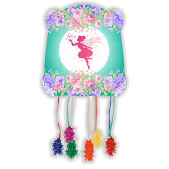 Piñata de cartón con un diseño de hadas. Una preciosa piñata para cumpleaños. Se vende vacía. Pero disponemos de chuches y bolsas surtidas para rellenar. Mide aprox. 28cm x 33cm