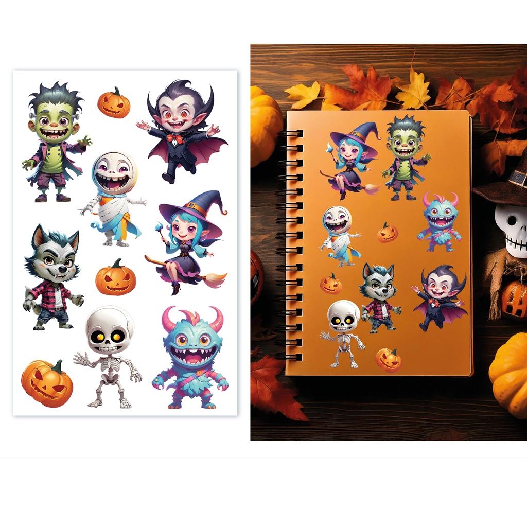 Blister con 4 hojas de Pegatinas Sticker con dibujos de Halloween. Para decorar y pasar un rato divertido.