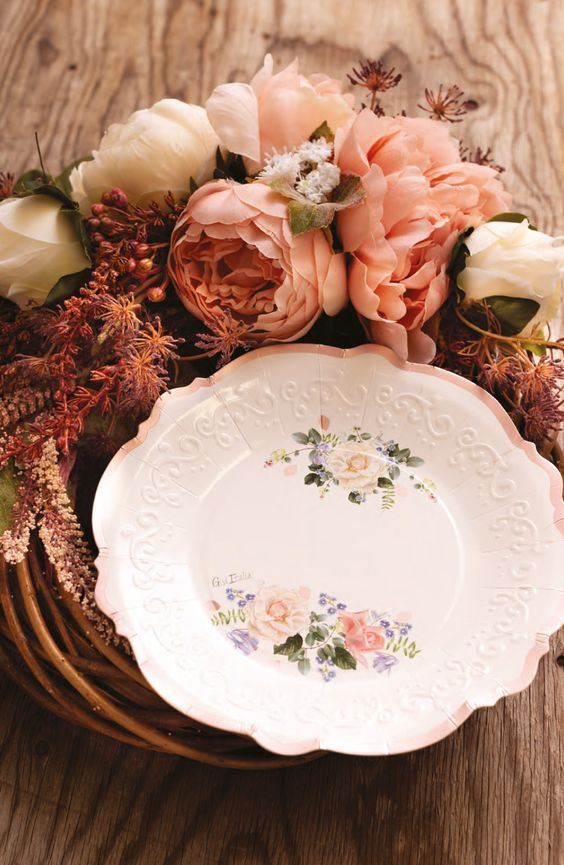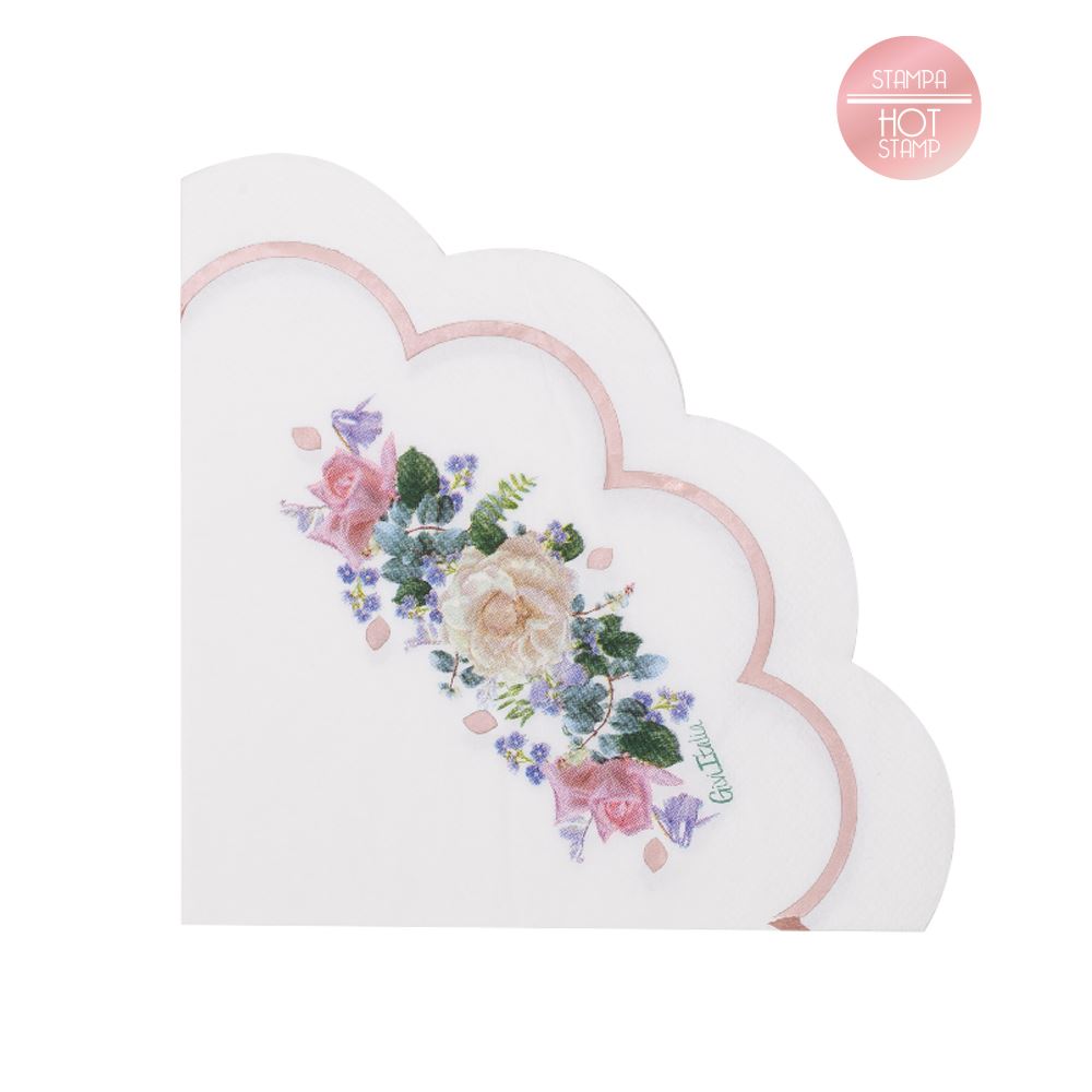 Servilletas de papel con un diseño elegante y toque vintage. Tienen una forma de media luna onduladas, que hacen que sea una servilleta super original. Con un dibujo de unas flores en tonos rosas y verdes claros. Sorprende a tus invitados con esta vajilla. Medida 33x33 cm abierta. Contiene 16 unidades. Biodegradables