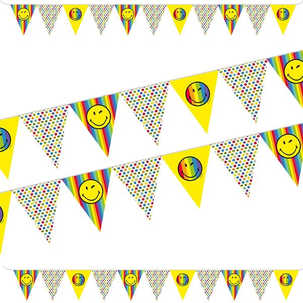 Banderín Emoji Smiley de Cartón (3m x 15cm). Dale un toque de diversión y expresividad a tu fiesta con el Banderín Emoji Smiley de Cartón de 3 metros de fiestafacil.com. Este alegre banderín presenta una serie de emoticonos divertidos que le darán un ambiente juguetón y colorido a tu celebración.