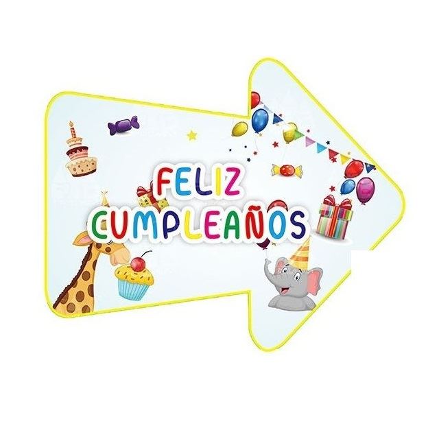 3 Carteles de cartón infantiles donde viene la frase Feliz Cumpleaños. Estos divertidos carteles con forma de flecha te indicarán donde esta la fiesta de cumpleaños. Son una monada. Les encantará a todos tus invitados. Pueden ser reutilizables. Miden aprox. 40cm x 33cm