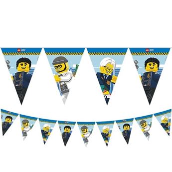 Banderín lego City. Para decorar tu fiesta de cumpleaños. Mide aprox 2.3m