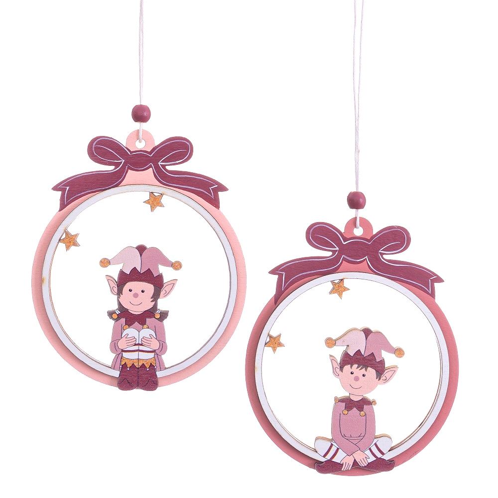 2 Decorados colgantes Navideños con dos simpáticos Elfos de color rosa. Miden aprox 21cm x 10cm. Son ideales para decorar en Navidad.