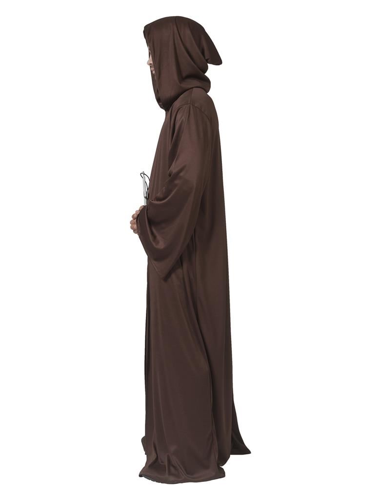 Combina esta capa marrón con capucha con un maquillaje oscuro y un crucifijo o báculo para lograr un look aterrador o místico. ¡Ideal para destacar en cualquier fiesta!