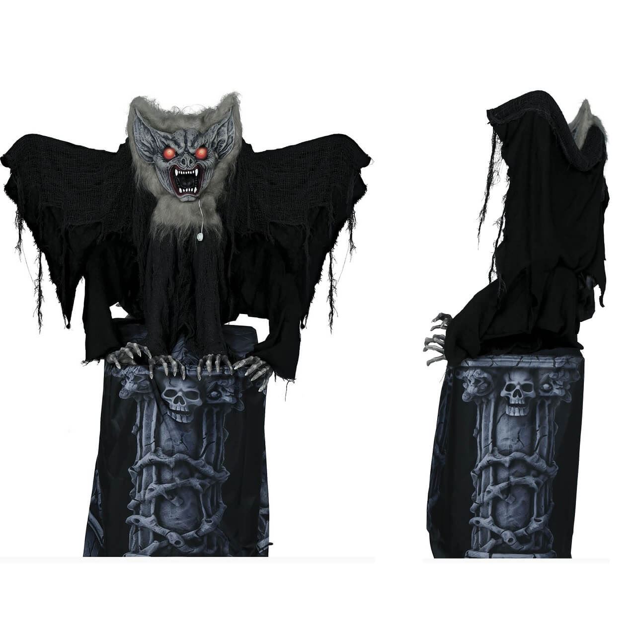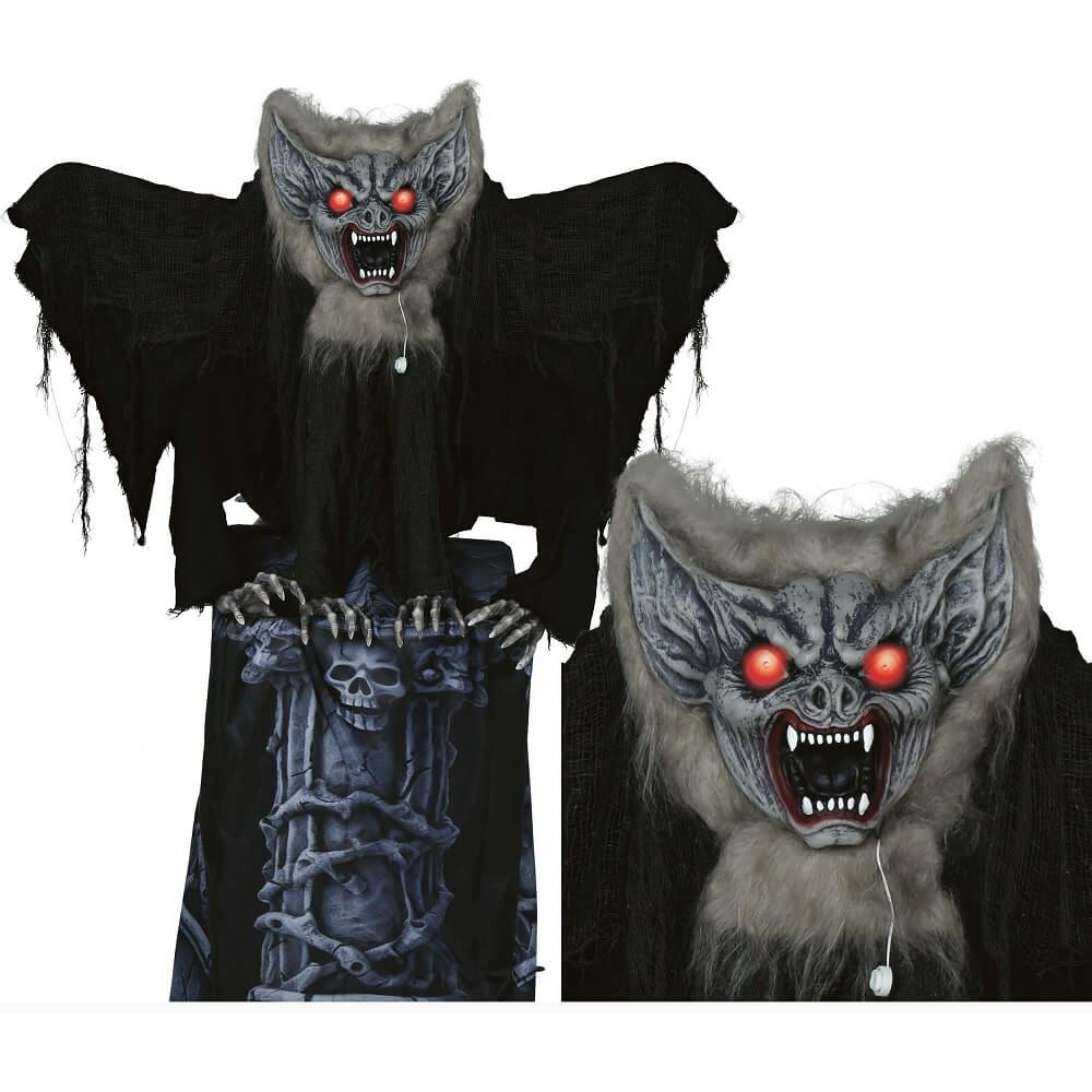 🦇 Murciélago Animado con Sonido y Luces 🎃Dale un toque espeluznante a tu decoración de Halloween con este murciélago animado con sonido y luces. Mientras se posa en una lápida, extiende sus alas y emite unos gritos escalofriantes. Tiene sensor de sonido para darle a tus invitados un susto de muerte. Mide aproximadamente 150cm. Utiliza baterías AA.
