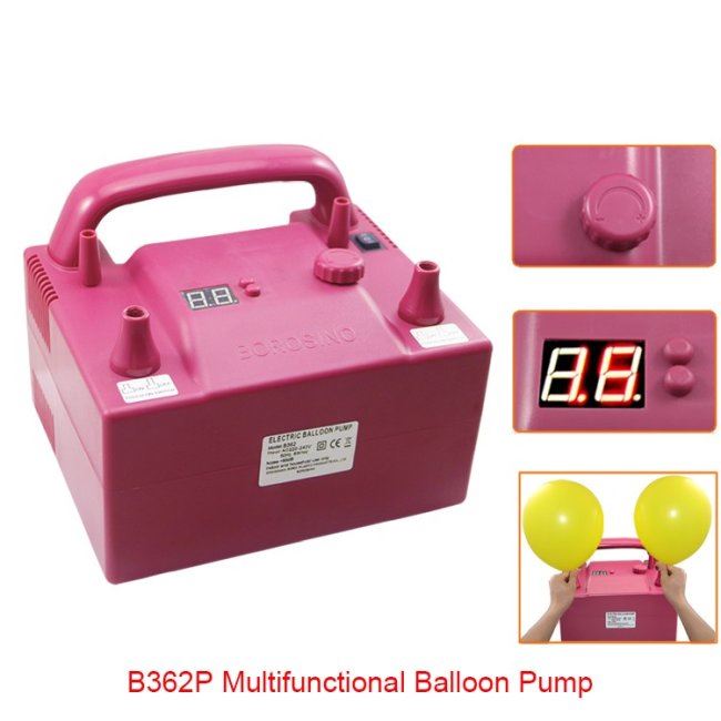 Práctico y económico inflador eléctrico de globos de látex con dos boquillas y temporizador, perfecto para inflar dos personas a la vez o dos globos y ganar tiempo en tus decoraciones. Este inflador dispone de dos boquillas para globos de látex R12. Tenemos unos precios muy baratos y económicos.
