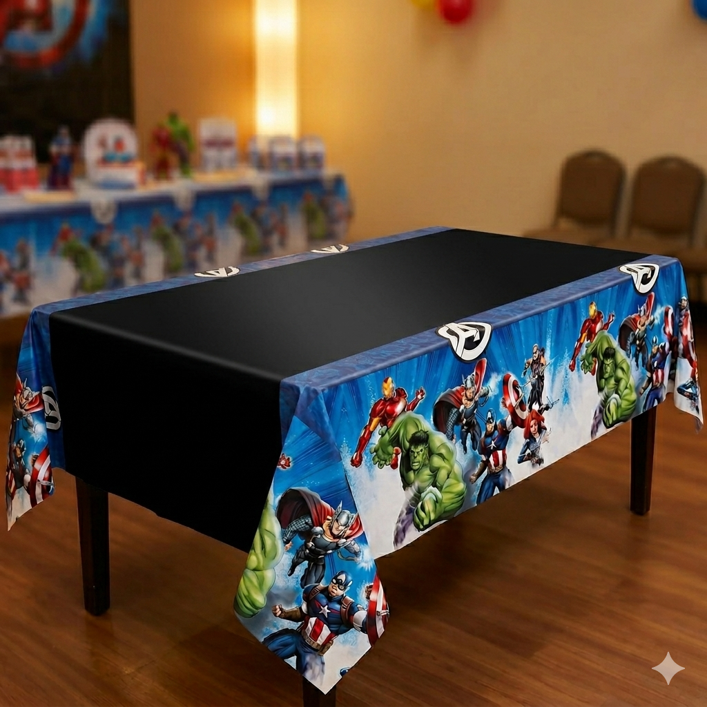 Este mantel es ideal para proteger la mesa de manchas y derrames mientras crea una decoración espectacular para los fans de Marvel.