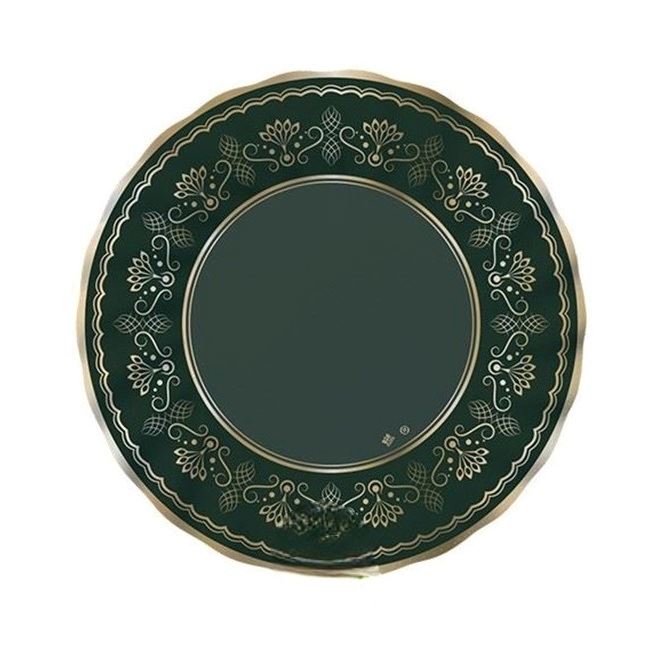 6 Platos de cartón Royal Verde dorado postre. No es solo un plato bonito, es original y perfecto para fiestas Navideñas o eventos con amigos y familiares. Estos platos de cartón harán que luzcas una preciosa mesa y luego sea todo desechable. Miden 20cm.