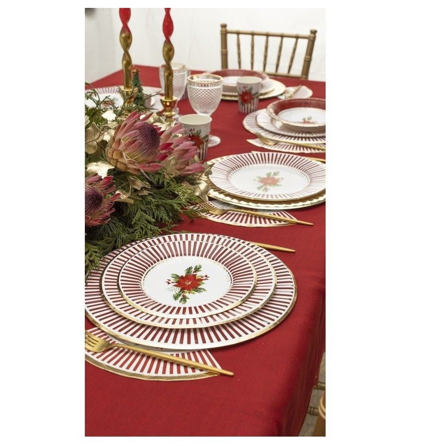 16 Servilletas de color blanco con el borde dorado con un estampado navideño precioso y elegante con la flor de pascua. Contiene 16 unidades. Con una medida 33x33cm. Es ideal y original para la mesa en aniversarios, Navidad, fiestas o celebraciones.