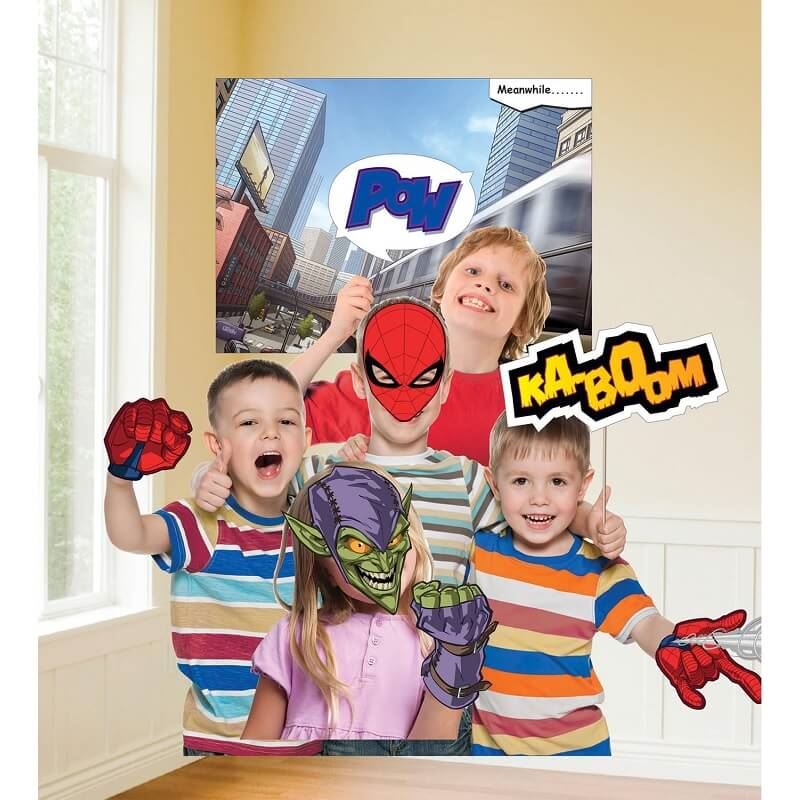 Convierte cualquier fiesta en una auténtica aventura de superhéroes con este set de photocall de Spider-Man. El kit incluye 11 accesorios con palito (props) y un fondo de ciudad de 104 x 72 cm, ideal para que los peques se sientan como si estuvieran dentro de un cómic mientras posan con sus personajes favoritos. Perfecto para cumpleaños infantiles, fiestas temáticas o simplemente para hacer fotos inolvidables con amigos.