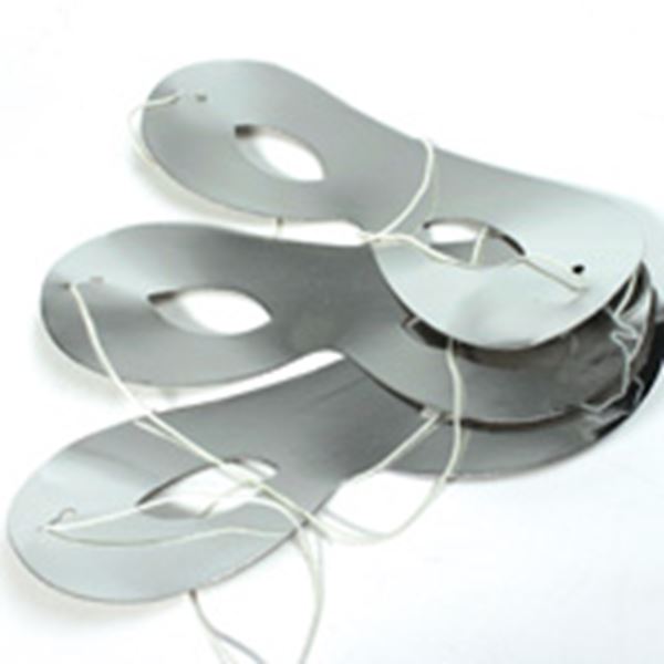 Un antifaz llamativo en cartón plateado, con goma elástica para sujetar. Mide aprox. 15,5 x 6cm.