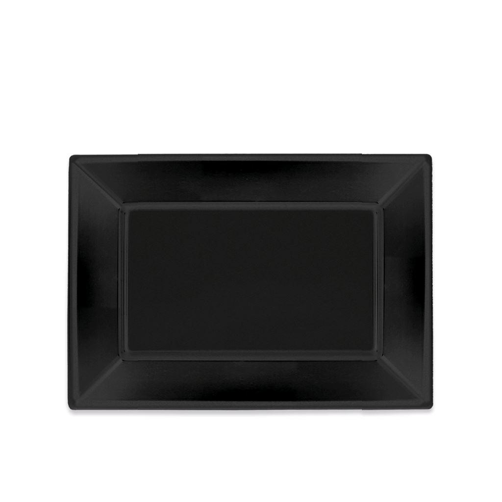 Bandeja Rectangular Reutilizable Negra 33 x 22,5 cm (Pack 3 uds) 🎩 Estilo elegante y práctico para tus eventos con esta bandeja rectangular negra de plástico reutilizable, ideal para servir con clase en fiestas, celebraciones, catering y reuniones familiares. ⭐ Beneficios destacados Diseño elegante y sofisticado en color negro que realza cualquier presentación Tamaño versátil (33 x 22,5 cm) ideal para aperitivos, entrantes, postres o bandejas de canapés Fabricadas en plástico 100% reciclable, resistentes y respetuosas con el medio ambiente Reutilizables y duraderas, perfectas para múltiples usos sin perder calidad Pack de 3 unidades, perfecto para eventos medianos o para combinar con otros elementos de la colección