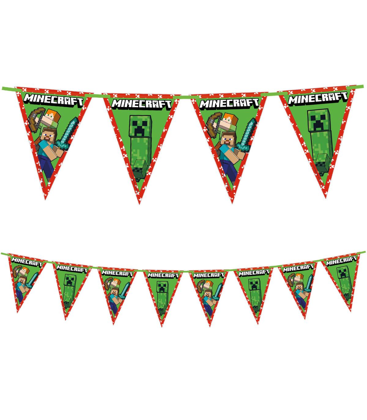Banderín de cartón de Minecraft. Quedará genial como decoración en su fiesta de cumpleaños. Mide aprox. 2,3 metros de largo. Producto ecológico biodegradable.