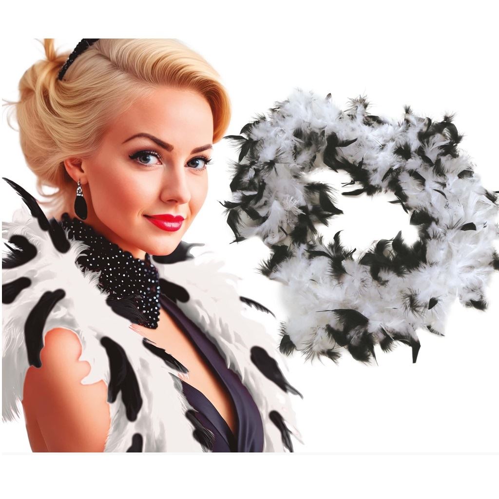 ¡Dale un toque glamuroso a tu look con esta sofisticada boa de plumas en blanco y negro! Ideal para disfraces, eventos temáticos, fiestas de Halloween o celebraciones elegantes. Su diseño bicolor combina perfectamente con atuendos inspirados en personajes icónicos o estilos vintage.
