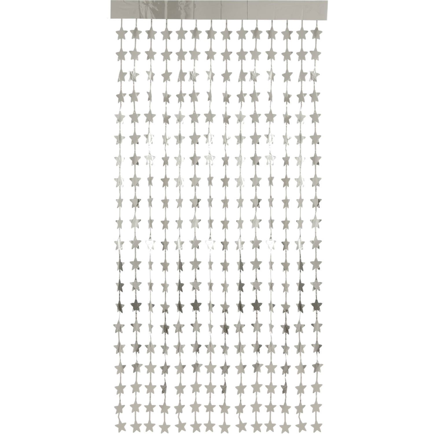 Cortina de color plateado con estrellas, para fiestas o cumpleaños. Mide aprox 2 metros de largo por 1m de ancho.