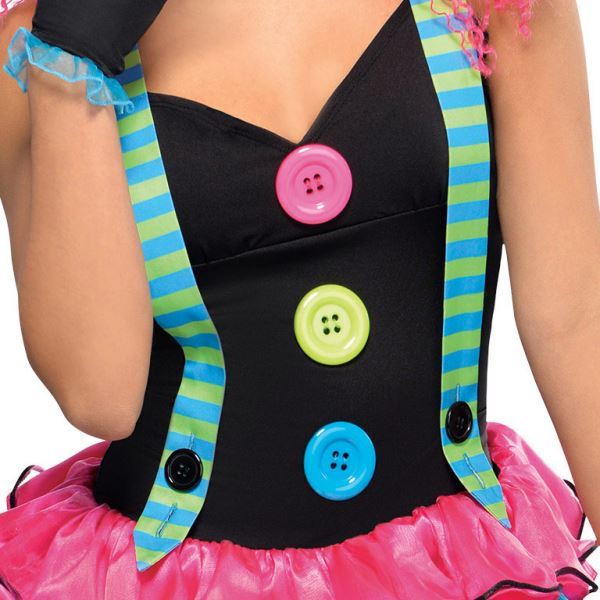 Luce un estilo único y lleno de color con este disfraz de payaso colorido para mujer, ideal para fiestas temáticas, carnavales, Halloween o espectáculos. Con un diseño moderno y alegre, este atuendo combina tonos neón con un toque divertido y original que no pasará desapercibido. 🌈 Características principales 👗 Diseño completo y detallado: vestido negro con falda de tres capas en tonos rosa, azul y verde, decorado con botones grandes y tirantes en contraste. 🎀 Incluye accesorios: guantes (uno rosa y uno negro), medias a rayas sin pies, gargantilla azul y diadema con mini sombrero derby. ✨ Material cómodo y resistente: fabricado en poliéster suave, ligero y flexible, ideal para moverse con libertad. 📏 Talla estándar: Talla 10-12 años. Talla S 🎭 Fácil de poner y quitar, perfecto para fiestas de disfraces o eventos escolares.