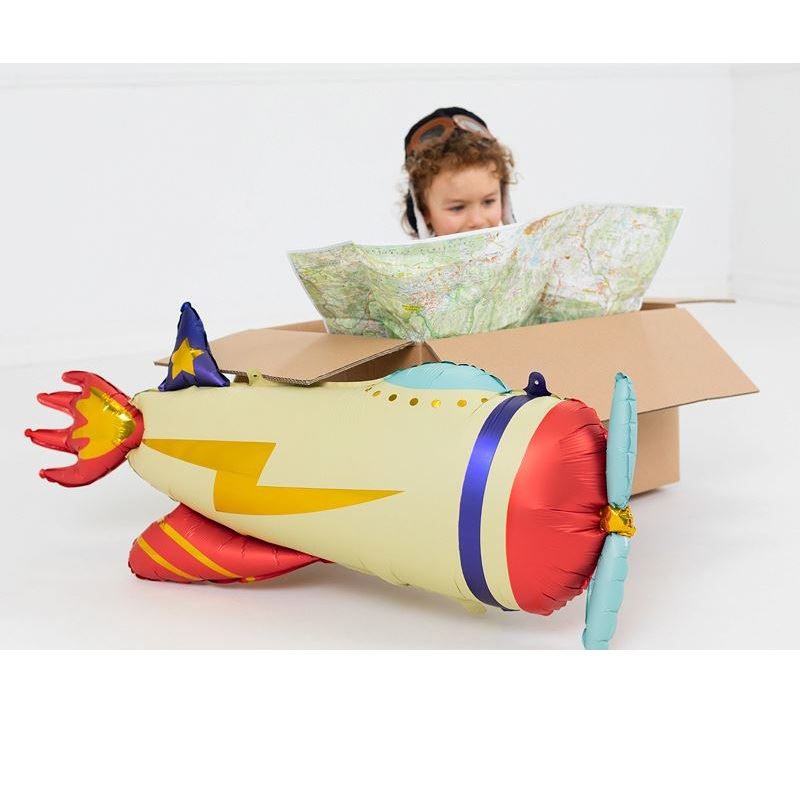 Haz despegar la imaginación con este globo foil en forma de avión, perfecto para sorprender en fiestas infantiles, decoraciones temáticas o para regalar a pequeños aventureros.