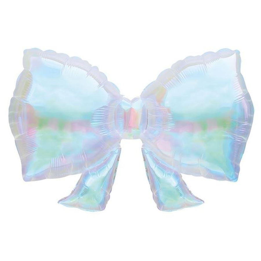 Un detalle brillante y elegante para decorar fiestas con encanto Este globo con forma de lazo gigante y acabado iridiscente es perfecto para darle un toque mágico y sofisticado a tus celebraciones. Con sus reflejos perlados y suaves tonos arcoíris, transforma cualquier espacio en un rincón digno de foto. Características principales 🎀 Tamaño grande – 92 x 58,5 cm aprox. ✨ Acabado iridiscente – Brilla con la luz desde distintos ángulos 💨 Solo inflado con aire – No se eleva con helio 🔄 Reutilizable – Con válvula de seguridad para inflar y desinflar 📦 Incluye 1 unidad – Presentación individual