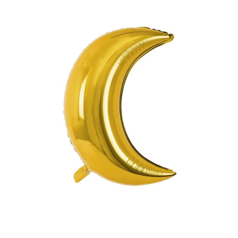 Globo Luna Dorada Metálica 60 cm – Decoración Elegante para Fiestas, Baby Showers y Eventos Nocturnos Este globo metálico en forma de luna creciente dorada es el detalle perfecto para elevar cualquier decoración de fiesta. Con un tamaño inflado de aproximadamente 60 cm, su acabado foil reflectante aporta un toque mágico y sofisticado, ideal para celebraciones temáticas como “Twinkle Twinkle Little Star”, baby showers, cumpleaños, bodas o fiestas de Nochevieja. Diseñado para inflarse con helio, flota y se convierte en el protagonista del ambiente.