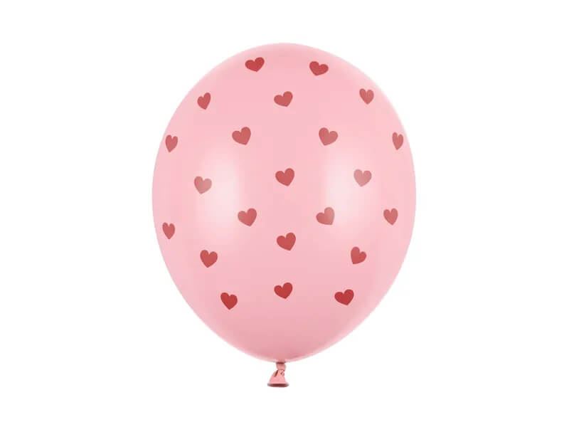 Decora con amor y estilo. Estos globos de alta calidad en tono rosa pastel con corazones rojos son perfectos para San Valentín, aniversarios, baby showers o cualquier celebración romántica. Globos resistentes de látex en color rosa pastel con un estampado de corazones rojos de 5 lados, ideales para crear un ambiente dulce y especial. Tamaño inflado de hasta 30 cm de diámetro.