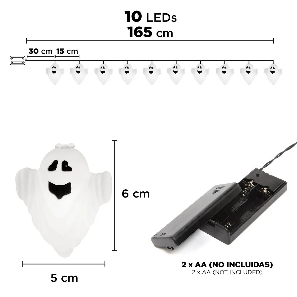 • Incluye 10 luces LED con forma de fantasma