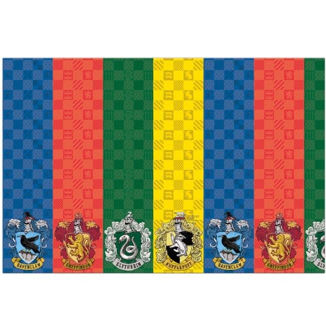 Mantel de papel de Harry Potter. Trae las ilustraciones de todas las Casas de Hogwarts. Crea una super fiesta mágica con nuestro menaje y decoración de esta película basada en los libros J. K. Rowling y que tanto les gusta a niños y mayores. Mide aprox. 120cm x 180cm.