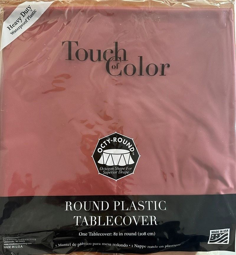 Mantel redondo burdeos de plástico 208 cm (82”) es un mantel desechable de alta resistencia, ideal para vestir mesas redondas en fiestas, celebraciones y eventos. Su color burdeos aporta un acabado elegante y sobrio, perfecto para ocasiones especiales donde se busca una decoración cuidada sin complicaciones.