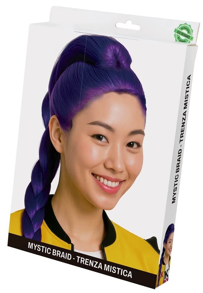 • Peluca con trenza larga morada brillante, efecto volumen.