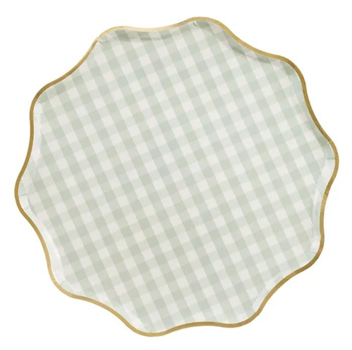Platos Estampado Vichy Verde con Borde Dorado Cartón 23cm (6uds)