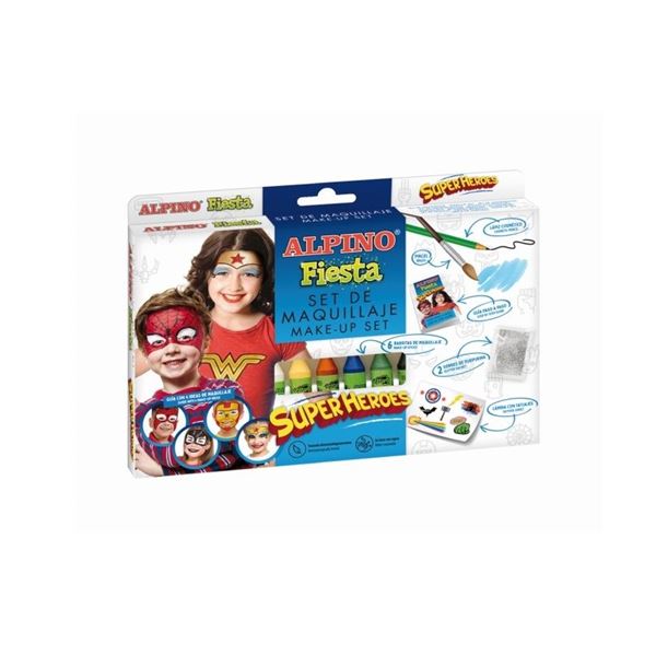 Set Maquillaje Superhéroes - Para Pequeños Héroes Creativos El Set Maquillaje Superhéroes es la elección perfecta para los pequeños héroes que adoran la aventura. Este kit incluye 6 colores deslumbrantes, un lápiz, un pincel, una guía de paso a paso, dos sobres de purpurina y láminas con tatuajes. ¡Deja que los niños den rienda suelta a su creatividad y se conviertan en valientes superhéroes en sus propias misiones épicas!