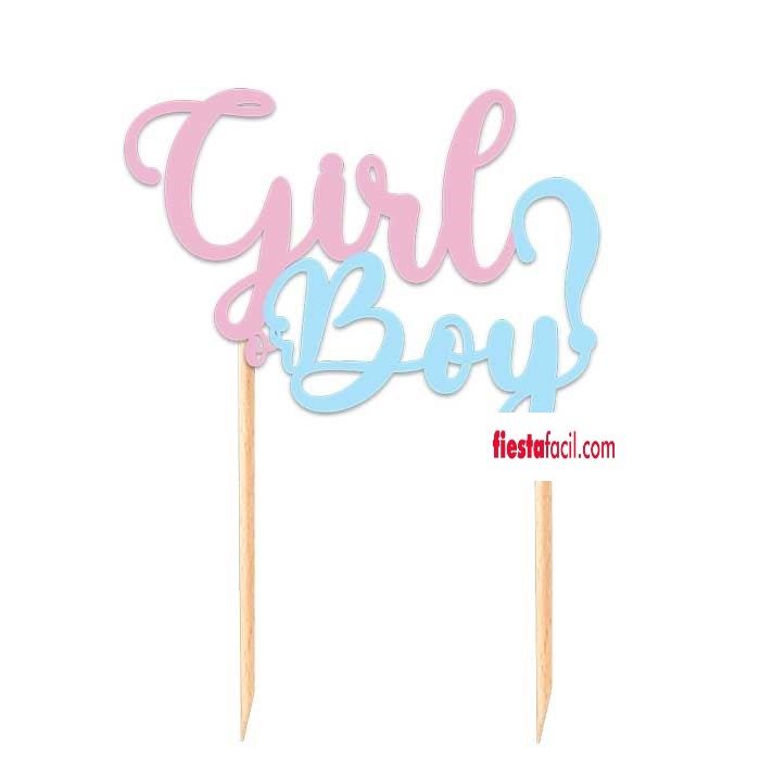 Topper Girl or Boy de cartón, viene en color rosa y azul, para adornar la tarta y que sea original. Están hechos de cartón y tienen un tamaño de 21 cm x 18cm. Estos toppers son perfectos para darle un toque especial a tu celebración y mantener a todos emocionados mientras esperan la revelación del género del bebé.