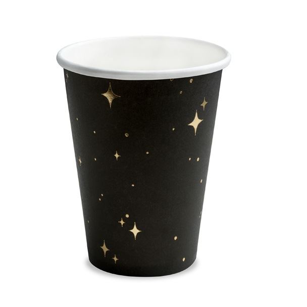 Los Vasos de Cartón Negros con Estampado Dorado son una elección elegante y sofisticada para tu evento. Estos vasos tienen una capacidad de 260 ml, lo que los hace ideales para servir una variedad de bebidas. Su diseño negro con estampado dorado, que incluye estrellitas doradas, agrega un toque de brillo y glamour a tu mesa. Son perfectos para fiestas temáticas, bodas, eventos formales o cualquier ocasión especial en la que desees dar un toque de lujo a tu decoración. ¡Estos vasos son la elección perfecta para servir tus bebidas con estilo!